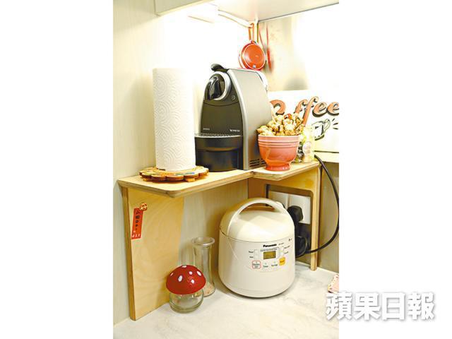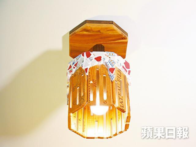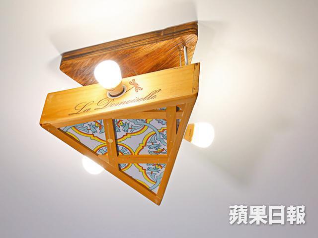 除了刁鑽複雜的鞋櫃,屋內三個燈罩都由廢木及酒箱變身而成,其中在客廳的,正是陳家維初出道做木工時的作品,「因為是初期做的,沒甚麼工具,又未有工場,都是在村屋的露台慢慢做的,都花了好幾天呢。」至於為何木工也懂電工?陳家維笑言駁電等工作要交由專業的裝修師傅處理,並非他自己話晒事。