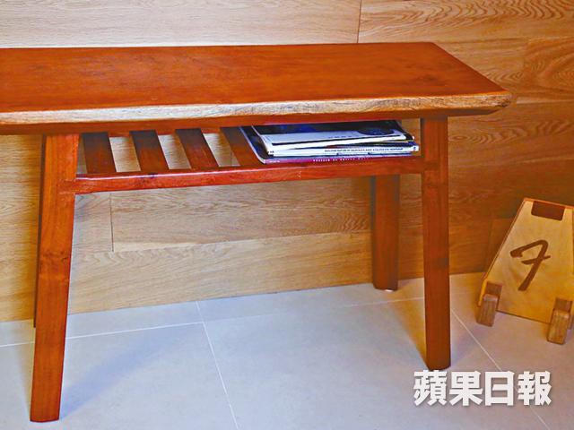 做一件如書櫃或梳化般大的家具,材料費動輒用上千元,以為體積越大,材料費便越貴?豈料全屋最貴的,是一張置於客廳旁的茶几,光是材料費便用了近六千大元,令全屋木家具的造價近三萬元。茶几用上有「緬甸鐵木」之稱的金車花梨木,呈紅褐色,硬度較高,常用於製作屋架、高級家具,加上運用「入榫」的方法接駁木塊,將榫頭插入卯眼,整個茶几就更堅固耐用。