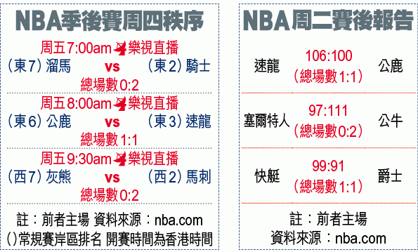 周二NBA季後賽首圈,塞爾特人縱有I湯馬士(Isaiah Thomas)射入20分,但仍在主場以97:111不敵公牛,總場數落後至0:2。兩軍在周五將移師芝加哥出戰Game 3,公牛大有機會成為第六支上演「黑八」奇蹟的球隊。