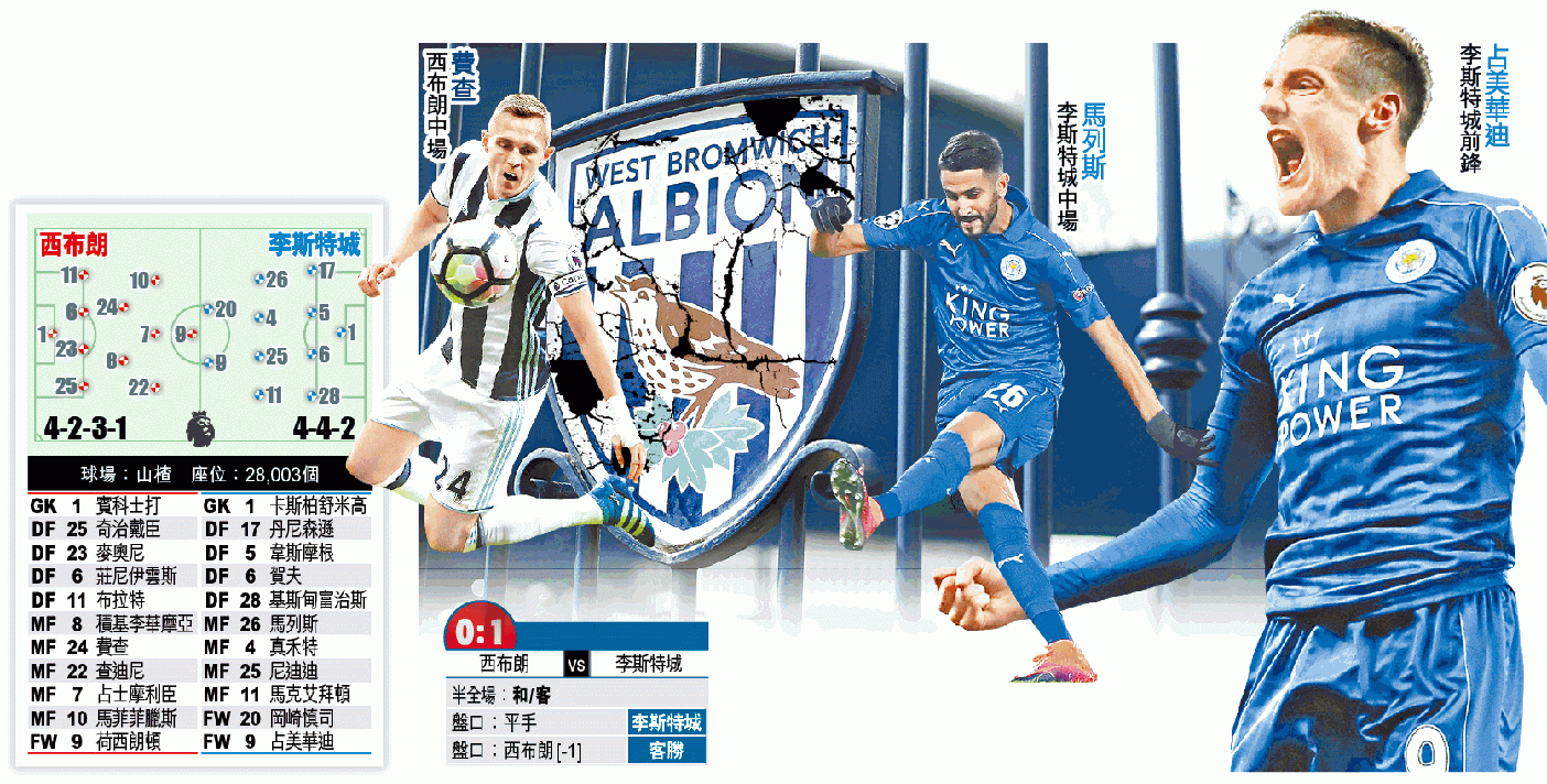 周六英超上演中游戰,西布朗成功護級後,狀態有所回落,已經連輸三場;「狐狸」李斯特城周中縱不敵阿仙奴,但表現不差,加上中堅韋斯摩根可望復出下,有力助客軍搶分,平手盤宜取客軍。
