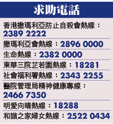 葉妙妍昨向《蘋果》表示,抑鬱症狀包括情緒低落、對任何事物沒興趣,失眠、沒有食欲及做事失去動力,還有躲在家中不想見人、思想負面,「覺得做人冇意義、冇希望,對自己冇信心」,嚴重的話會出現自殺傾向。至於治療方法包括藥物治療及心理治療,當事人亦可透過寫作、畫畫抒發情緒。她認為,當事主出現自殺傾向時,除了要留意病人情況,還要確保家居安全,減低病人自殺機會,例如「窗要有窗花,家中勿存放過量藥物,收好利器」。