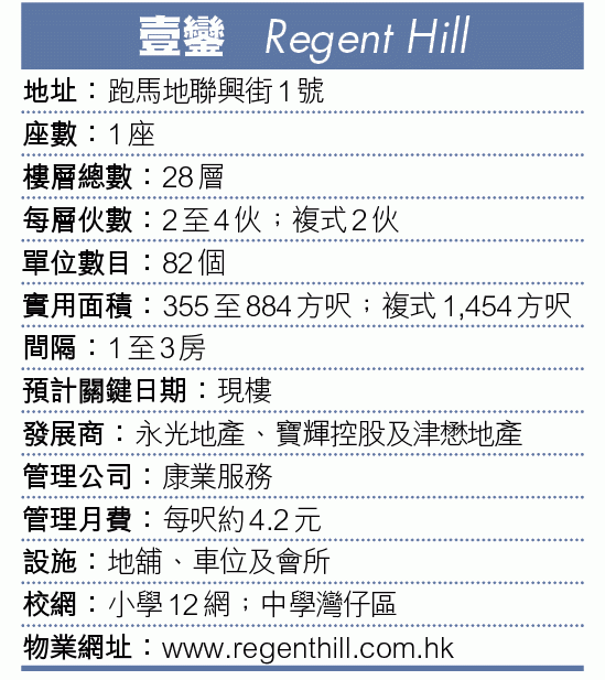 跑馬地壹鑾早於2015年5月開售,82個單位尚餘19個分層及兩個頂層複式待售,以最高折扣率6%計,貨尾中只有一個單位折實售價低於1,000萬元,屬於低層一房戶,面積355方呎,市區買新樓,門檻絕對不會低。