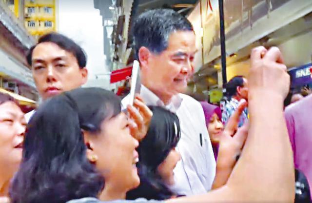 任期尚餘不足兩個月嘅特首梁振英,雖然係夕陽期,表現卻好高調,早前批評「反對派」示威阻住佢落區後,近日就頻頻上載落區相片同短片,力證自己冇有怕。好似噚日咁吖,佢就去咗大埔區,然後喺facebook上載短片,一如所料全部片段都見佢被簇擁好受歡迎,但原來有位烈女一度狙擊佢,689只能以笑遮醜。