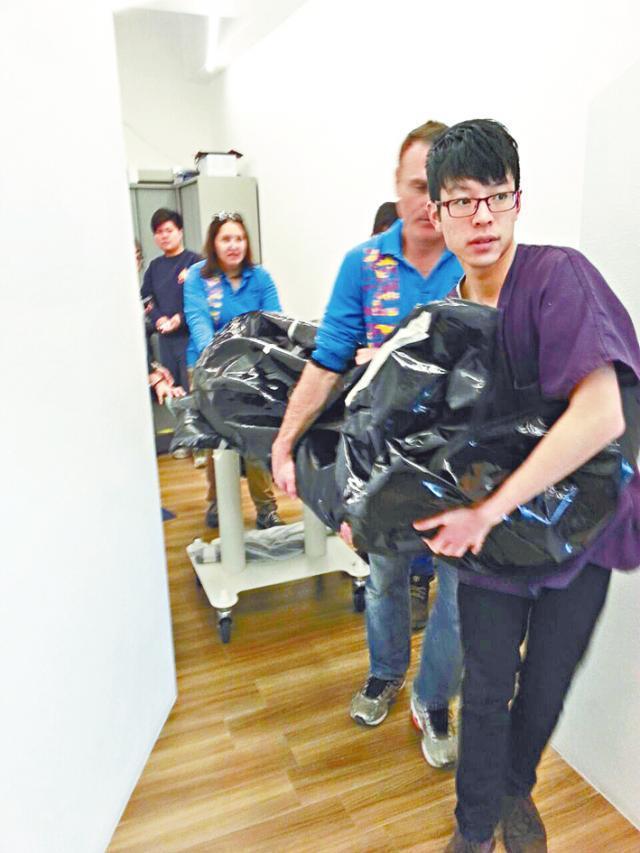 【本報訊】他們是非一般的法醫,負責解剖身形龐大的鯨豚。33歲的大學助理教授葛展榮解剖過150條鯨豚,見過豚屍腐爛發脹,爛掉胃部和舌頭從豚口噴出,有時身上沾染屍臭幾日不散。90後的大學生袁晞朗前年加入團隊,抬屍、剖屍通通做過,他們指工作不討好,卻有助找出鯨豚擱淺的原因。團隊全球首創出「影像解剖」技術,研究刊登在學術期刊《PLoS ONE》。