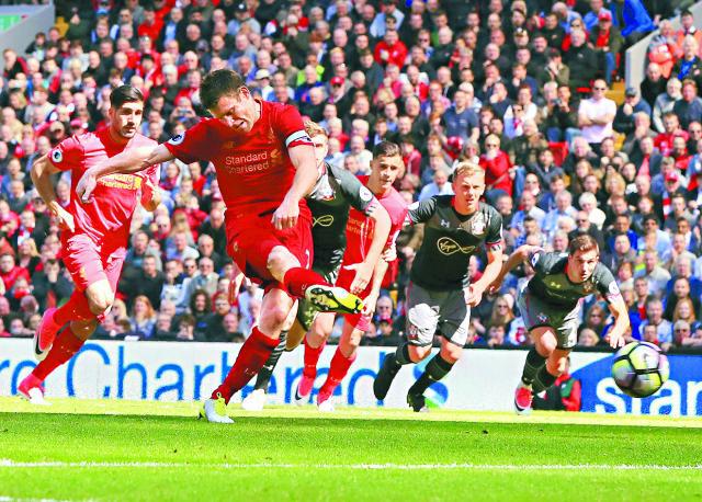 利物浦周日英超主場鬥修咸頓,雖然全場圍攻,但進攻如「老鼠拉龜」。加盟紅軍以來12碼百發百中的占士米拿更首次「宴客」,被費沙科士打撲出,最終利物浦只能以0:0賽和對手。