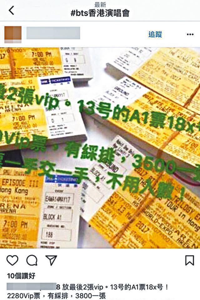 不過當主辦方前晚公佈VIP門票參觀綵排環節安排時,勁多粉絲即留言狂轟,質疑主辦不公平購票,又留言:「其實你哋可唔可以解釋吓邊度有官方售賣嘅2,280元VIP門票?係咪畀晒黃牛內部拎晒咁就叫公售?香港區連想買嘅機會都冇,你公售都冇呢個票價你都仲好意思拎出嚟話有2,280元VIP可以睇綵排。」有粉絲留言要向海關舉報主辦有違《商品說明條例》。至於網上就有大量的BTS VIP炒飛出售,當中更索價3,800元至一倍價錢一張,本報聯絡主辦方,惟截稿前仍未有回覆。