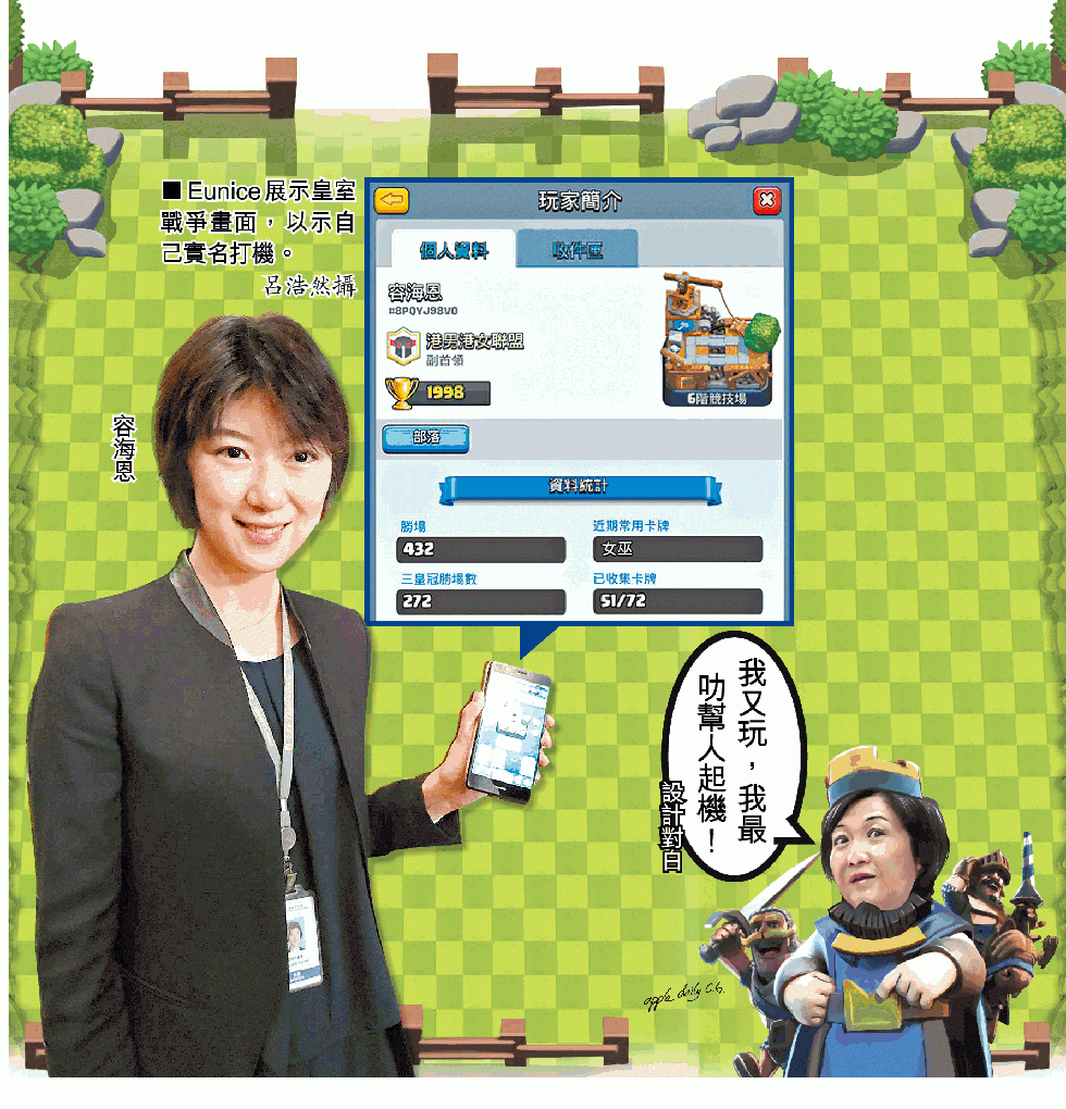 唔講你唔知,講咗你亦未必信,Eunice有玩非常出名嘅手遊Clash Royale(部落衝突:皇室戰爭),仲要實名打機,唔怕露真身㖭。