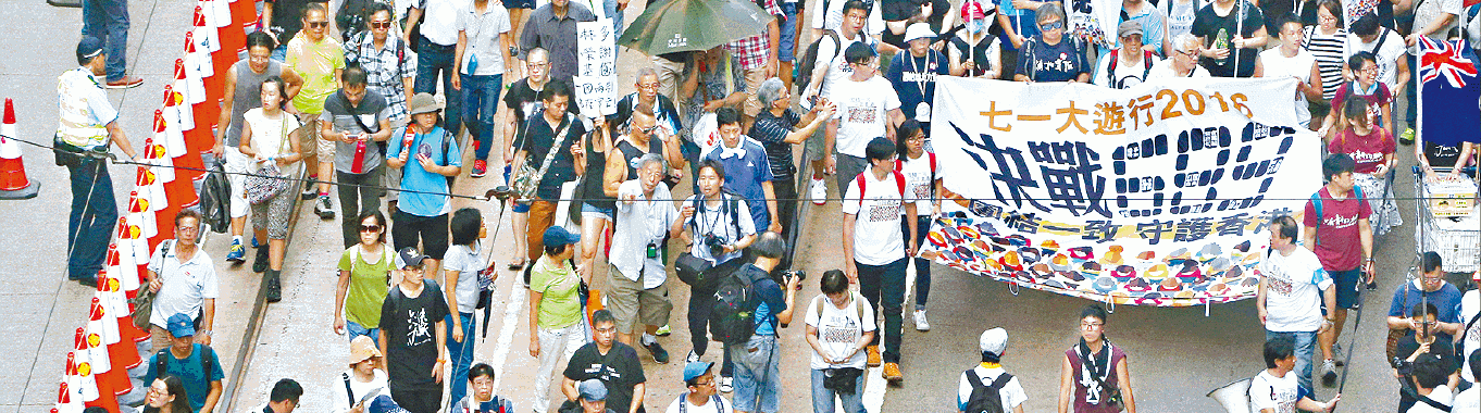 【本報訊】盛傳國家主席習近平將於下月底至7月1日來港,民陣按慣例於4月初申請6個維園足球場作為7.1大遊行的起點,但康文署將場地批給由中聯辦主任張曉明、特首梁振英擔任榮譽贊助人的香港各界慶典委員會,舉辦慶回歸活動,也是03年後首次。民陣召集人區諾軒批評康文署因習近平來港而「洗太平地」,指無論政府如何打壓,7.1大遊行一定如期舉行。
