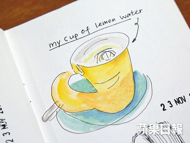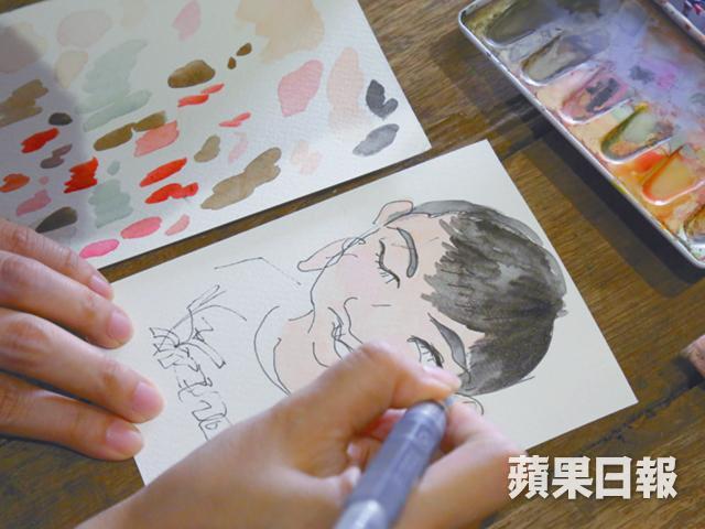 數年前她做家庭主婦,生活較休閒,但或許與自己鬥氣得多,性格又對自己充滿要求,去年旅行時感覺到胸口腫脹,返香港檢查後發現患上乳癌,「我好記得確診第二日去睇小朋友表演,一邊用錄影機拍一邊兩行眼淚流出嚟,驚睇唔到阿仔長大,覺得無可能有下一年。」在家人支持下,才慢慢平復心情,下定決心醫好病,開始做化療之餘,每三星期去醫院打一次針,健康狀況轉差,「每次喺屋企唞都會攰,乜都唔想做,連飲杯水都覺得無力。但我又冇理由不停上網,就惟有喺櫃桶搵番晒啲畫具出嚟畫。」腦海忽然閃過以前學的盲畫技巧,就不停瘋狂望住來畫畫畫,「例如我唔食得壽司、刺身,嗰日想食乜就畫乜,望梅止渴吓。」 不過盲畫,講就容易,點忍得到唔望畫紙?她笑說:「會㗎!第一次畫一杯熱檸水,會諗個杯嘅耳仔畫乜位置呢,會好想偷睇自己畫得靚唔靚。」直至對着鏡盲畫自己,成品竟然與父親有八分相似,畫出個美麗意外,才發現原來自己一直對任何事都過份執着,「自己完全冇諗過畫出老竇,嗰一刻笑咗。我以前好怕畫人,因為仔細到要留意有幾多眼睫毛,但用盲畫就很舒服,連左右眼比例都不需要理會。」慢慢地,便透過盲畫學懂放鬆自己、放開自己,接受不同的結果,正如面對癌症一樣。