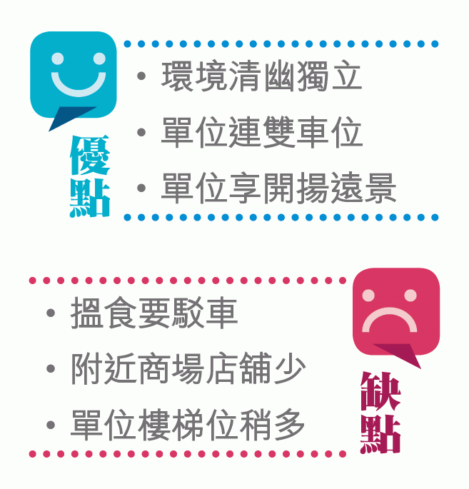 現時複式放盤不足10個,最平頂層放盤連車位叫價1,480萬元,望露輝路方向,景觀一般,介紹的頂層複式屬於罕有附連雙車位放盤,叫價1,600萬元,可以遠望部份海景,為近期優質筍盤。