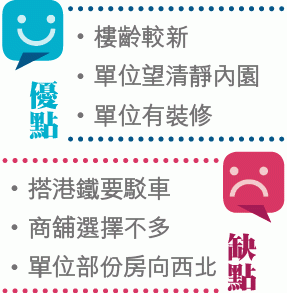 嘉峰臺位置自成一隅,環境清幽獨立,高層向外圍單位,景色開揚無阻,部份更可遠眺維港。物業兩房及三房戶第二市場入場費分別460萬元及580萬元,介紹的三房戶叫價650萬元,客廳向西南望清靜內園景,而同類最平放盤客廳向東北望山坡,觀感有明顯分野。單位屬於最受歡迎的直廳間隔,廳房附入牆傢俬,廚廁設備亦齊全,保養大致完好,接受得來可以節省大筆翻新費。