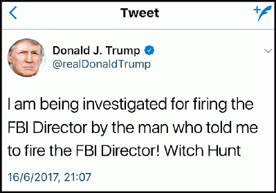 特朗普今次推文被視為確認自己受查,但他的法律團隊否認,指有關推文是回應日前傳媒的報道──上周有報章披露,羅森斯坦委任的特別檢察官米勒正調查特朗普炒科米之舉是否構成妨礙司法公正。而在特朗普推文前,羅森斯坦發出罕見聲明,警惕公眾勿盡信消息來源不明的報道,強調「司法部一向不確認或否定這類消息」。