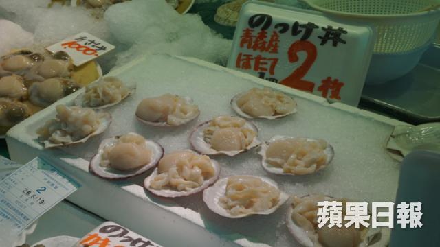 青森三面環海,出名多靚海鮮,如青森市內的「青森魚菜中心」,簡直就是一間海鮮丼自助餐餐廳,入面放滿各式各樣的前菜及刺身,逐份計錢,想吃多少就買多少。540𨨥買五張券,一券卷換一份,即每份約8港元,非常超值。選好便坐在一旁吃,不過最吸引記者的,一定是和手掌般大的帆立貝。