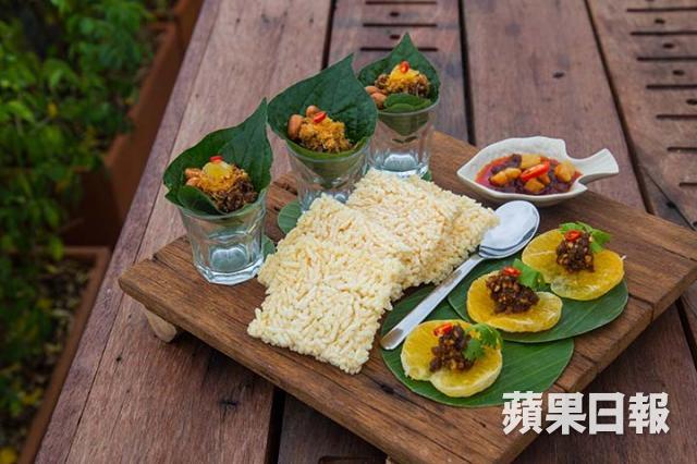 餐廳提供的泰菜源自老闆祖母的祖傳食譜,沿用傳統正宗的東北煮法。前菜拼盤集齊三款泰國傳統小食,將肉碎、酥脆花生、乾蒜等食材包入泰國香葉和鋪上柑橘肉,加埋特製醬汁,入口清新多汁。炒豬肉青芒拌飯配料豐富,米飯與蝦醬同煮,味道香濃。大頭蝦厚肉彈牙,蝦膏精華完全融入紅咖喱汁,伴飯一流。