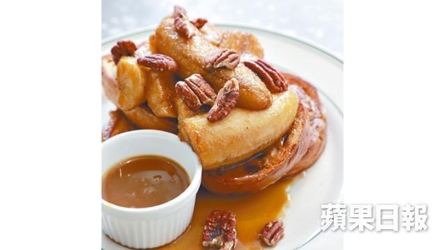 足三層的班戟厚身,完全是美國人的份量。圍邊煎得些微焦脆,入口卻鬆化不已,湧出楓糖香,配搭酸酸甜甜的新鮮藍莓醬,剛好解膩。另一款Brochie西多士,包身鬆軟得來富蛋香,貼近正宗法式做法。香蕉被焦糖重重包圍,加上酥脆果仁豐富口感,同樣值得試。
