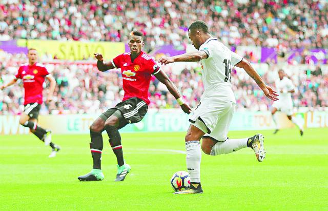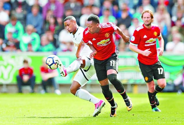 曼聯沿用上輪大勝韋斯咸4:0的正選陣容,盧卡古、保羅普巴、尼曼查馬迪等悉數正選登場。不過,主隊史雲斯先有開紀錄的黃金機會,三分鐘,拜利的解圍省中佐敦阿休,後者繼續引球推進在左路突破,並於窄角度用右腳腳面攻門,雖笠死曼聯門將迪基亞,但卻中楣彈出。10分鐘,曼聯在右路獲得罰球,桑馬達用左腳處理,這名西班牙中場斬入禁區,菲爾鍾斯頭槌頂中楣。