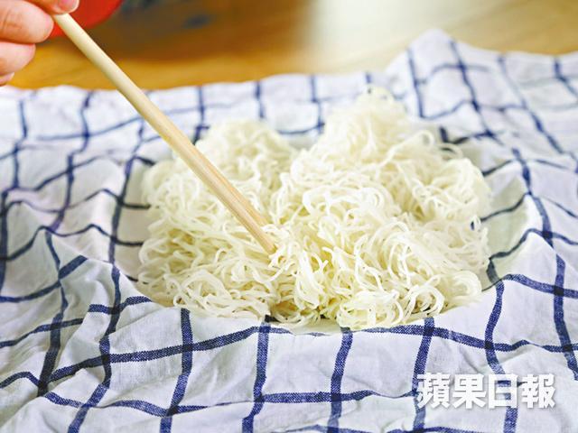 ② 米粉撈入隔篩, 篩走多餘水份。