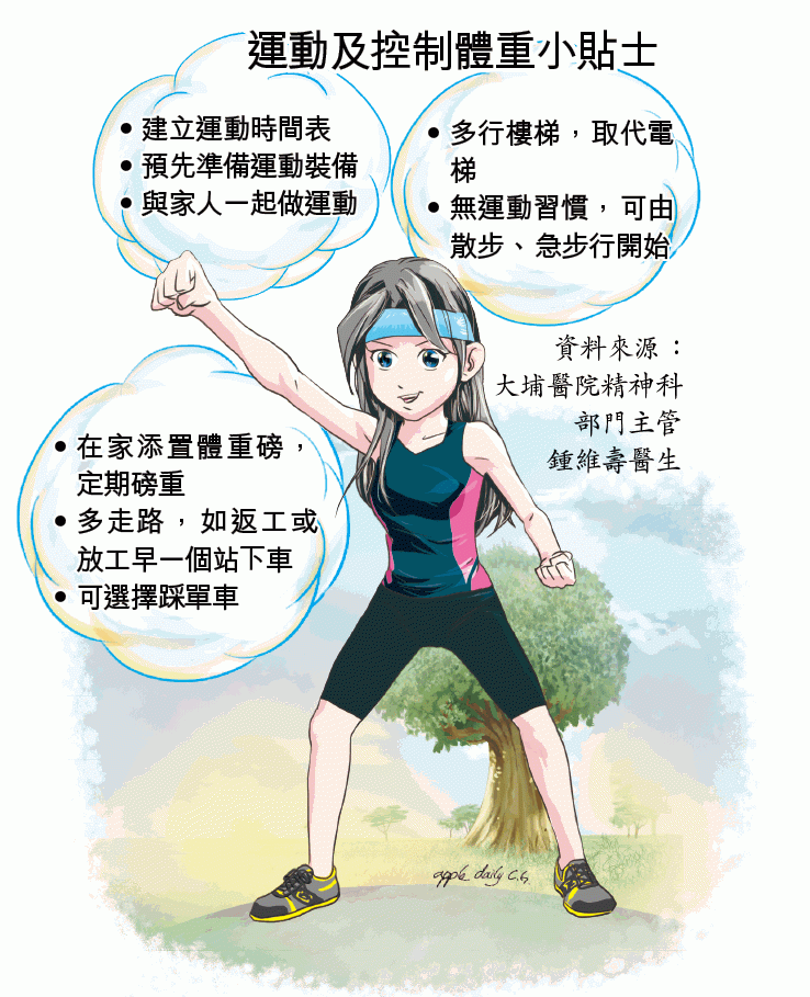 該院今年7月開展相關運動班,主要讓住院的情緒病人參與,如抑鬱症、躁鬱症及思覺失調等,對象是肥胖、集中力差,或姿勢差的病人。除控制體重外,也希望透過肌肉訓練,改善病人不良姿勢如寒背及紓緩痛症。