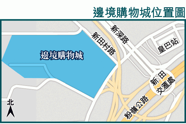 鄰近落馬洲皇崗口岸的新田購物城「The Boxes」原擬吸納內地旅客消費,分流上水水貨重災區的旅客量,但項目規劃後來改為主攻本港居民,預期港人佔45%,30%廣東省居民及25%其他遊客。開幕日期由原定的2015年十.一黃金周,多次延期,最近一次預期今年8月底開業,惟至今距離十.一黃金周尚餘一周,購物城仍未開幕。