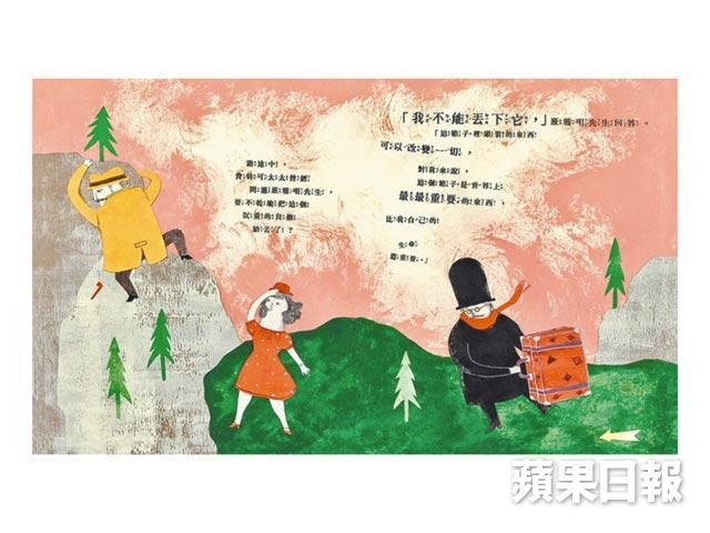 如此沉重的故事,要吸引孩子閱讀,便要靠創意。作者利用「行李箱」做焦點,避開了「納粹迫害猶太人」這主調,改用孩子易懂的說故事方式:「班雅明先生是個腦子裏充滿各式各樣超棒想法的哲學家,但有一天,他所生活的國家突然決定與眾不同的想法是非常危險的,並開始逮捕不同想法的人,於是他只得逃離這個地方。」環顧四周,政權迫害不同想法者多的是,改編後的繪本故事可以令讀者脫離真實歷史背景,代入到身處的時空裏面。