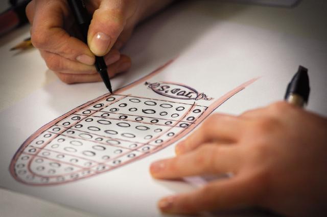 Gommino的設計概念來自風行於50年代的「開車鞋」。Diego親自描繪鞋款草圖,聘請一流工匠以手工切割頂級皮革,使用傳統Moccasin技術拼接35塊皮料,再跟據不同皮料品種及軟硬度,以130個縫針縫製鞋面。