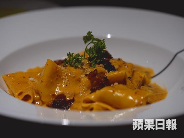我與友人點了皇帝蟹肉牛油果西西里大蝦沙律作為前菜,有兩隻大蝦及一塊皇帝蟹肉,食材新鮮,味道不錯,但沒甚麼特別。主菜方面,我極度推薦這兩道菜:一定要試的是Porcini E Tartufo薄餅,他們特意由米蘭購入一個重1.4噸的薄餅烤爐,我猜想運費一定不便宜。薄餅是最受歡迎的意大利菜式之一,這個重達1.4噸的Ambrogi(一個老牌薄餅烤爐製造商)薄餅烤爐,對餐廳做出正宗的意大利薄餅起着重要作用。他們製作薄餅麵糰的麵粉來歷也講究,是來自意大利Barbara,一間叫Paolo Mariani的麵粉廠所製作的。說回正題,這個Porcini E Tartufo薄餅材料有水牛芝士、牛肝菌、火箭菜沙律及(非常少的)黑松露片。薄餅表皮酥脆,但內裏煙韌耐嚼,可見麵糰實在做得出色,而且因為是用水牛芝士做的,芝士味道濃厚,加上黑松露片就更不用說了。總而言之,這是個很好吃的薄餅。