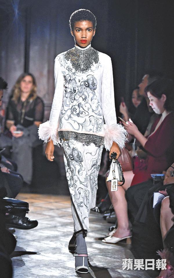 Miuccia Prada特別為上海騷設計了六個新look,加入旗袍領口、長衫剪裁及帶東方色彩的花卉圖案等中國元素,並推出刻着「Prada 榮宅」特別版手袋。