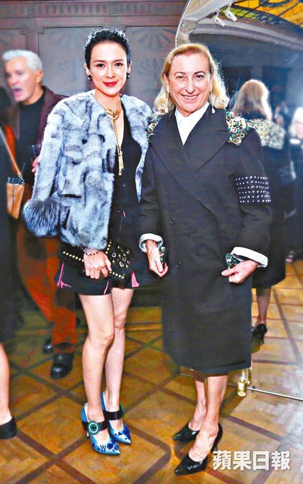 「Prada榮宅」上周揭幕,一連三天舉行連串活動,頭炮是在修繕後的古宅中舉行2018初春時裝騷。二百位來自全球的嘉賓包括章子怡、陳坤、內地女星劉濤、張梓琳、名模劉雯、林建岳女兒林心兒、萬里孫女萬寶寶和葉明子等在榮宅睇騷。穿了短褲、大褸的章子怡心情甚好,在場內和《大亨小傳》名導巴茲魯爾曼(Baz Luhrmann)、陳坤一齊坐,三人開騷前傾個不停,邊看新裝邊交流。完騷後,章子怡與專程到上海的Miuccia Prada會面及合照。