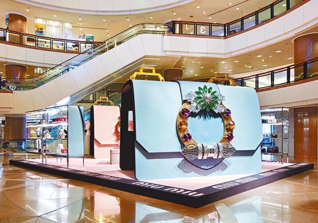 要數近期最受歡迎的手袋,相信非MiuLady莫屬!Miu Miu最近於海港城大堂中庭開設pop up店,期間限定至下月5日。為了象徵年輕女性大而無畏的獨立精神,品牌特意放了兩個Madras真皮製成、鑲滿品牌標誌性珠寶裝飾的特大版MiuLady手袋,成為最潮打卡點!