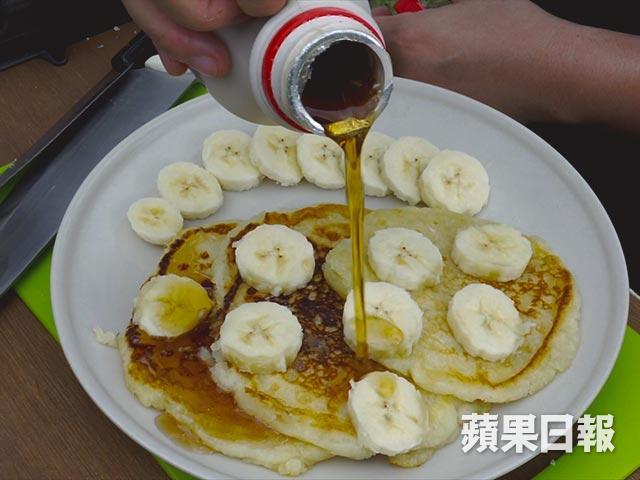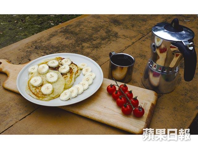 難得露營,夜晚寧願玩也未必想睡,加上「為何深夜總是餓」,大家可能最期待就是第二朝一早的早餐。相對來說,露營時的早餐較容易準備,可以煮粥、煮餐蛋麵,食三文治都很合理。但如果想追求生活品味、加點西洋色彩,可以考慮這個香蕉楓糖漿班戟。再配個即煲咖啡,人都當堂醒神點。