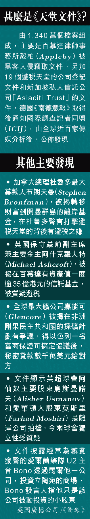 繼去年4月「巴拿馬文件」之後,「天堂文件」再次在環球政商圈投下震撼彈,首當其衝有華府及矽谷。