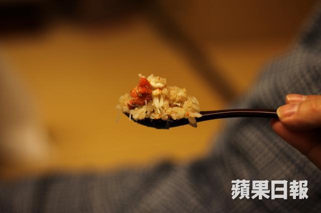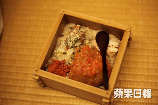 每個旅館都總有一道「味自慢」即引以為傲的餸,他們的味自慢是蟹宴的最後一道菜雌蟹蒸飯,雌蟹的體積、身價都比雄蟹少很多,肉自然也少,但勝在多蟹羔及蟹籽,放在杉木裏蒸飯,令每粒米粒盡吸蟹的精華,吃來確是其香無比。證明不最大最多未必是最好,恰如其份、盡展所長,才真箇高手。
