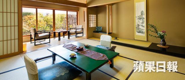 一入旅館門就有一顆有200多年歷史的松柏在迎候,整片大窗戶都面對這個北陸地區最有名的庭園,眼前看見深秋的樹葉,據說春天紫藤花盛開,夏天在梧桐間會有螢火蟲飛舞,冬天白雪掛上枝頭,一個庭園的確可治癒許多疲憊的心靈。