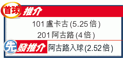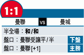 「讓球」曼聯受讓平/半,博下盤;另外,由於摩連奴領軍的球隊踢法一向穩,就算今役面對自己「天敵」哥迪奧拿帶領的曼城,料亦不會隨便搶攻,因此,波膽宜取曼聯和1:1或者曼聯小勝1:0。