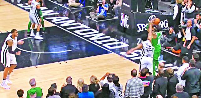 不過,比賽尚餘25秒時,真路比利竄入籃底搶得重要的進攻籃板,為馬刺得到額外的進攻機會。這位前阿根廷國手得球後回到場中央,待大鐘倒數至最後十秒左右,才藉由阿域治的單擋展開攻勢。年僅19歲的塞爾特人選秀探花塔圖(Jayson Tatum)負責防守比自己年長21年的真路比利,在被單擋後失位,真路比利見機不可失,馬上在賀福特(Al Horford)補防射入絕殺三分球,馬刺領先105:102。