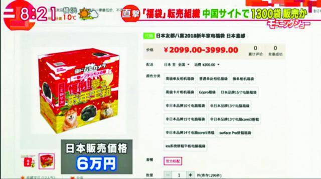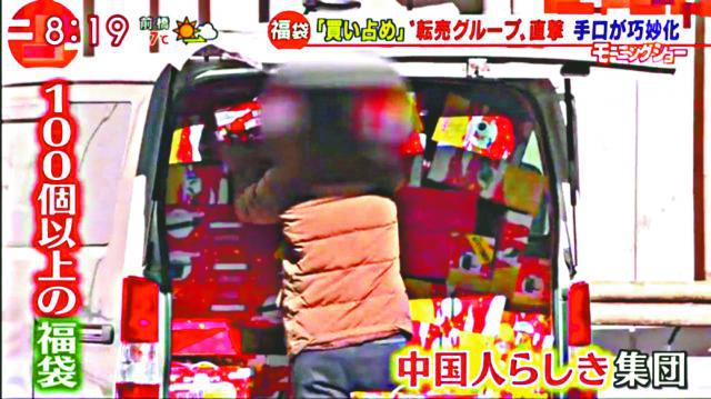 隨後,節目工作人員在網上發現,中國網站有招聘告示「1月1日在新宿排隊的工作」,報酬有5,000元日圓(約345.51港元)以上,並會採用50人以上。而且,他們在中國購物網站上,找到店家以6.8萬元日圓(約4,700港元)賣出價值6萬元日圓(約4,100港元)的福袋,更誇張的是,他們聲稱庫存達約1,300個。