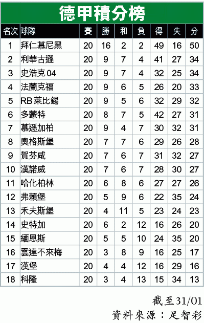科隆雖然是包尾大幡,不過他們歇冬後表現大躍進,三戰取得兩勝一和有七分,已經比他們在整個上半季所得的六分為多,因此目前距離尾四的緬恩斯只差七分,護級成功的機會大得多。