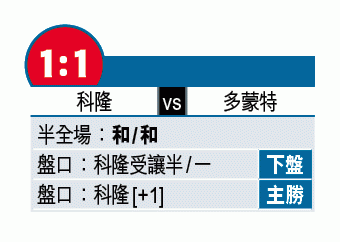 而科隆振作的關鍵,無疑是一月從史特加簽入前鋒泰路迪,這位29歲的上季德乙升班功臣,今季被投閒置散,結果來到科隆重生,首兩仗已入三球,上仗鬥奧格斯堡雖然無「士哥」,但仍能帶動科隆繼續搶分,而日本鋒將大迫勇也今季上陣10場亦取得入球,可夥拍泰路迪攻堅。此外,科隆中場兼德國正選左閘祖拿斯赫達一月傷癒復出,亦是科隆的利好因素,該隊今仗重返主場鬥頹勢的多蒙特,有力保住不敗,受讓半/一必捧下盤。