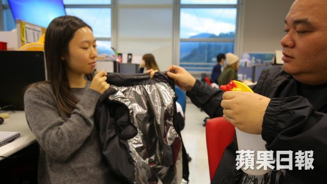 Lorraine試到這裏,說已經很想買了,但她又關心到清潔上的問題;據產品說明書稱,發熱背心是可以用手洗的,方法是用稀釋的洗衣液在背心上擦拭,後再以濕布抹乾淨即可,嚴重者亦可用稀釋的皂水,以手按壓清洗。不過肥通的建議是一般穿發熱背心時,都是需要有多兩層layer保護的,分別是底層的排汗衫與外部的大風褸,其實發熱背心接觸人體汗液機會不大,最多都是有一點汗氣,至於外部的風褸,亦防止了發熱背心接觸到外部污物,所以要清潔的地方不太多,所以建議是每次穿着後,都以噴壺噴灑上酒精消毒即可,只要除去細菌,就易產生異味,在每季穿着後才作一次性大清洗較佳。