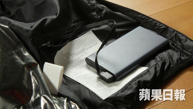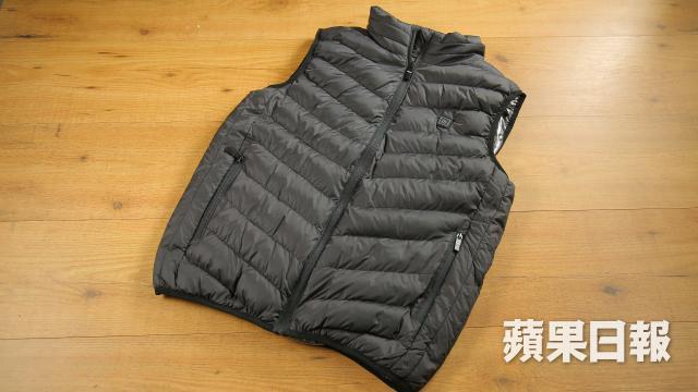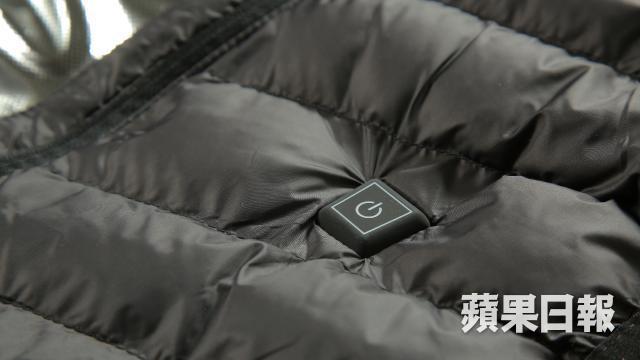 發熱背心上手,發現是最基本的夾棉式設計,不過與同類背心最大不同處,是在衫身的背位頂部(約佔背部四分一面積),與衫領的位置,都使用了據稱從日本進口的「炭纖維發熱絲」,只要用家在前幅的暗袋中抽出USB插頭,再接上普通手機使用的USB外置充電電源,就可以開始發熱。發熱溫度共有三個級數,而調校溫度只靠胸口之上一個LED亮光按鈕,長按5秒就開機,這時LED會顯示成紅色,亦是最暖的45℃高溫模式,再按一次會顯示藍色是35℃中溫模式,按第三次會顯示綠色的25℃節能模式。