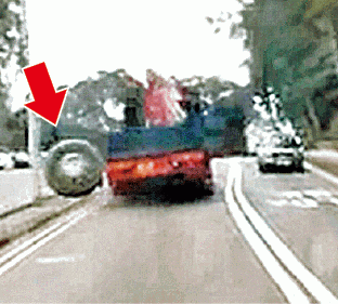 【本報訊】一輛貨車昨於西貢公路行駛期間,左尾孖轆先後飛脫,撞向路邊咪錶及一輛途經私家車,私家車司機頸部受傷送院,警方正調查甩轆意外起因。