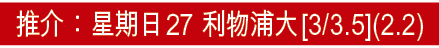 首循環熱刺主場大勝4:1,今戰兩隊為競逐前四席位,肯定互不相讓。預計不擅防守的利物浦會繼續以攻待守踢法,而熱刺反擊亦具威脅,相信會是一場緊張刺激的入球秀。