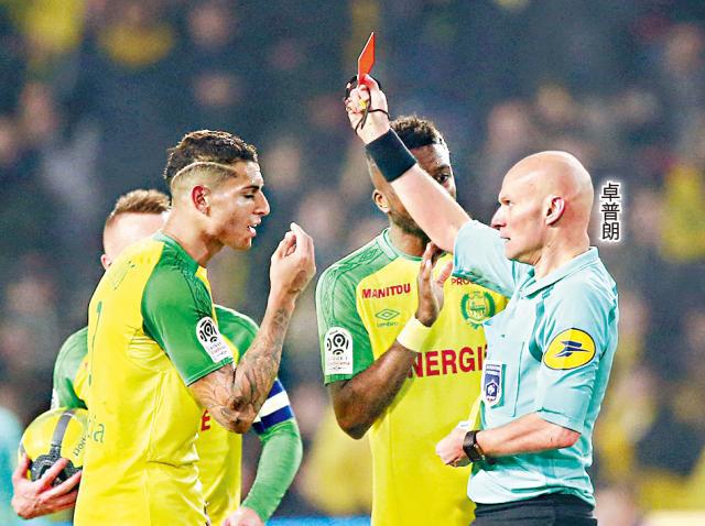 英國《BBC》報道,上月中喺巴黎聖日耳門(PSG)一球小勝南特嘅法甲聯賽入面,俾24歲南特後衞迪亞高卡路士意外掃跌,其後出腳踢人報復並向對方出示第二面黃牌趕出場嘅球證卓普朗,周四被法國聯賽紀律委員會判罰停止執法半年,但當中有一半刑期係緩刑。45歲嘅卓普朗賽後曾經道歉,並代為要求撤銷迪亞高卡路士嘅第二面黃牌,但仍難以逃過被罰嘅命運。
