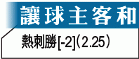 「讓球主客和」熱刺[-2],雖然球隊今季只試過四次作客淨勝對手三球或以上,不過熱刺實力遠勝羅奇代爾,而且羅軍心繫聯賽,故今役宜捧熱刺「客勝」。