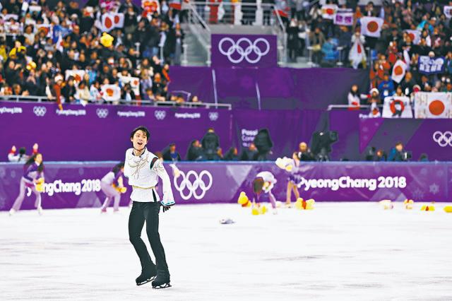 羽生在男子花滑的短節目中,已經拿下111.68的高分,打好衞冕基礎;他在上周六的自由滑當中,再得206.17分順利奪冠。銀牌落在另一位日本選手宇野昌磨手上,在自由滑賽前排第二的西班牙選手查維亞費南迪斯,則奪得一面銅牌。