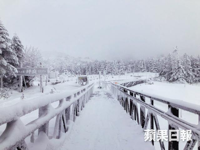 山頂站旁邊是坪庭,坪庭內舖設了一條長1公里的散步徑,行一周大約需時30至40分鐘。在夏天時可以在這裡觀賞到高山植物,而冬天就有滿地白雪和樹冰怪獸。不過在嚴冬,光是走出室外已經需要莫大的勇氣。還記得那天氣溫只有攝氏零下15度,在外面散步和拍照兩分鐘左右已經凍得腳趾痛,厚厚的積雪更是令人舉步維艱。