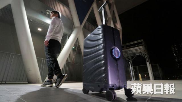 落街實試,放工時間人來人往,在人群中穿插也跟得夠貼。轉彎、S字型走也跟得上。最驚喜的是試落斜,一般手推篋放手都會衝落斜,但跟隨模式下,COWAROBOT R1電動輪有一定抓地力,落斜也可保持適當距離,不會失控。行走速度適中,規格上寫的最大速度為7.2km/h,快步走也沒問題,但跑起來跟不上就會停下。實試在街上走未有跟甩或撞到人的情況,只有在我們故意找人走過用家和行李箱中間,遮擋了鏡頭,才停下跟隨。跟隨時,行李箱和用家大概保持着半米不到的距離,要有人擋在中間也大有難度,另外離開大概5米,手帶就會響警報,也算有安全考慮。