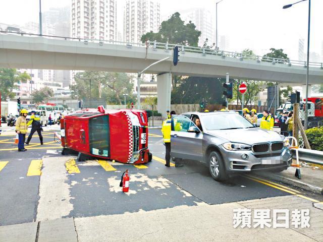 【本報訊】一輛消防指揮車,昨晨在北角駛入東區走廊支路時疑衝紅燈,遭一輛私家車攔腰猛撞,消防車失控撞及一輛寶馬四驅車後翻側,車上消防員一度受困,由途人合力扶出車外送院,事件導致民康街通往東區走廊支路一度全封。警方正調查意外起因。