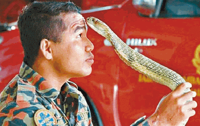 馬來西亞彭亨33歲「星級」馴蛇人胡欣,可跟眼鏡王蛇有親密接觸,技驚四座,不過他終避不過死神,被一條野生眼鏡蛇咬後4日毒發亡。