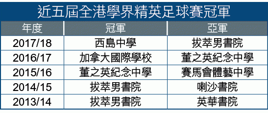 【本報訊】歷時約一個半月,在蒲崗村道公園足球場上演過24場大戰,全港學界精英足球賽昨日順利完成。西島中學憑出色防守,在決賽70分鐘法定時間與拔萃男書院以0:0賽和,互射12碼再由「學界奧祖亞」Yanou Van Raad以神勇表現,終8:7勝出,登上學界之巔,相隔14年後再成為精英賽王者。